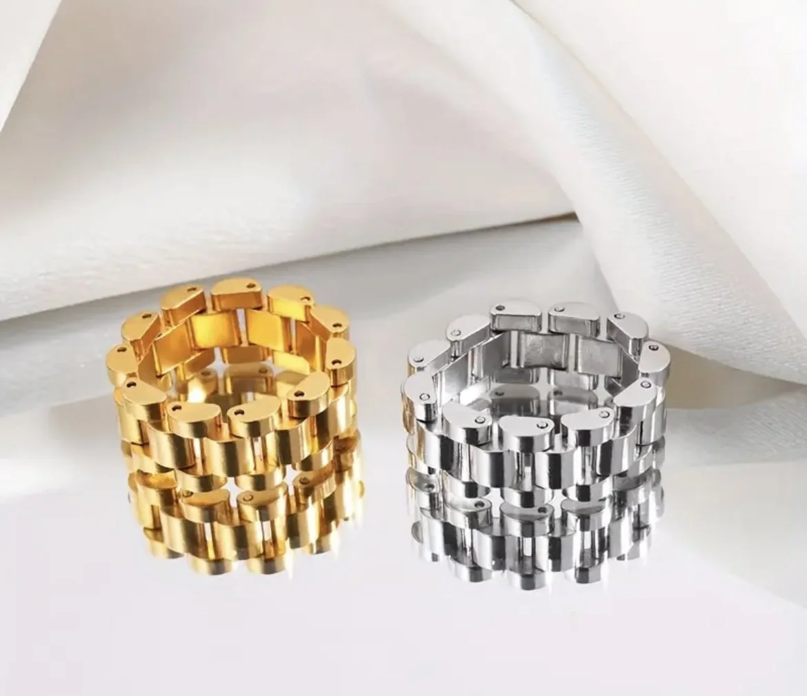 This ring has a slightly twisted form, which creates an elegant twisted form. Simple but elegant piece that’s suitable for both casual and formal occasions. Comes in Gold and Silver.