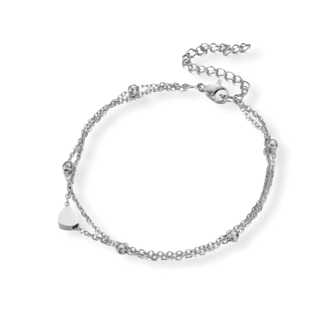 SELINA anklet comes in Silver stainless steel and 18k gold plated with a double layer chains